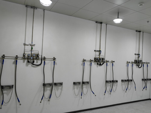 7.氣瓶間內保管的氣瓶按照帶防倒鏈的氣瓶之架放置,氣瓶之架更加堅固耐穿、漂亮大膽。氣瓶之架按照鋁硬質合金加工而成。
